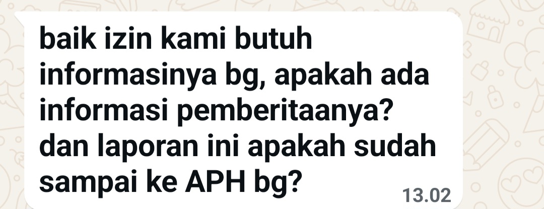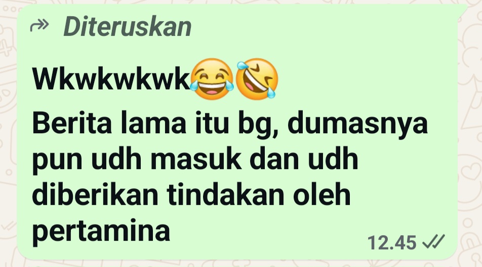 “berita lama itu bang, dumasnya pun sudah masuk dan sudah diberikan tindakan oleh Pertamina,” balas WA IPTU Chandra